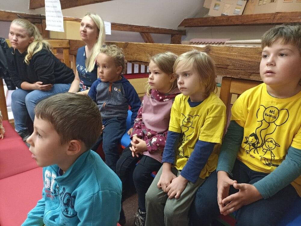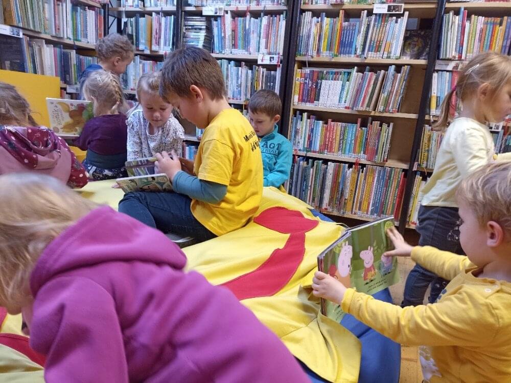 Ve velikánské knihovně v Uherském Hradišti nás paní knihovnice přivítaly pohádkou O třech kůzlátkách. Vyprávění bylo tak živé, že i některé naše děti se bály. Po pohádkách jsme se s dětmi uvelebili na pohodlných křeslech a „začetli jsme se“ do knih.