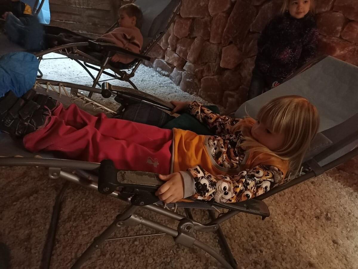 Po dlouhé pauze jsme zavítali s dětmi do solné jeskyně, abychom se konečně zbavili nachlazení, které nás pořád dokola trápí. S dětmi jsme relaxovali na lehátkách, zhluboka dýchali a odpočívali při poslechu pohádky. Některé děti si hrály na zemi s krystalky soli, nabíraly je do hrnečků a vařily, plnily jimi nákladní auta a převážely z jedné hromádky na druhou.